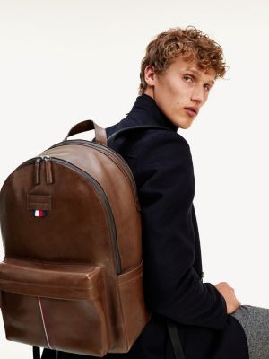 Zaino Casual In Pelle Con Custodia Per Laptop Marrone Tommy Hilfiger