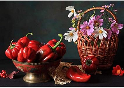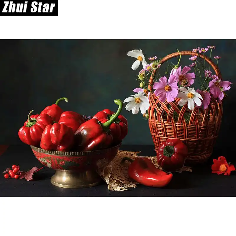 Diamond Painting 5D Completo,Diamante Bordado Flor Cesta Y Rojo Chile Costura Punto De Cruz Set Completo Diamante Cuadrado Pintura Diamante Bricolaje 30x40cm: Amazon.es: Hogar